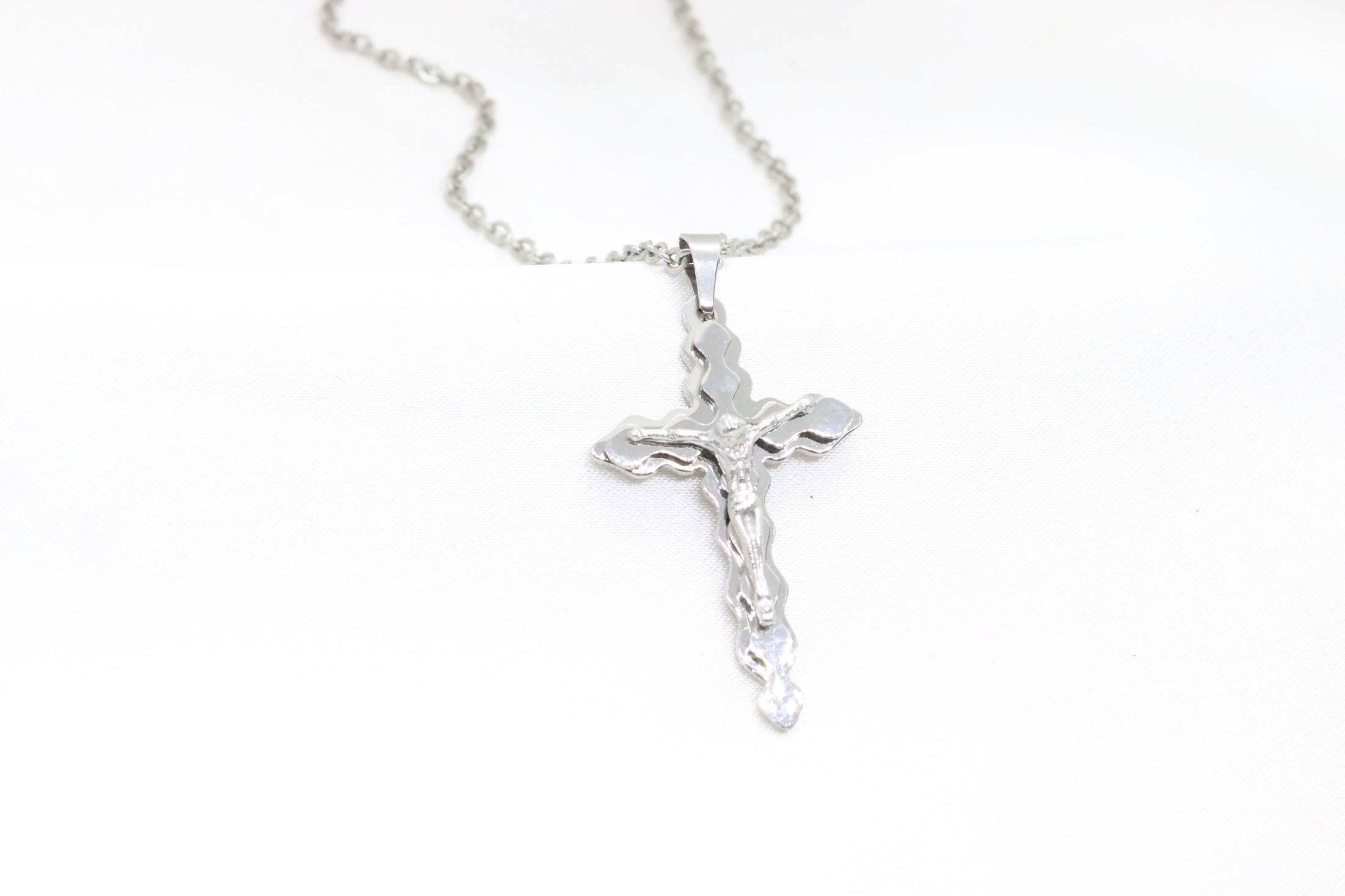 Ατσάλινος σταυρός με αλυσίδα σε ασημί χρώμα
