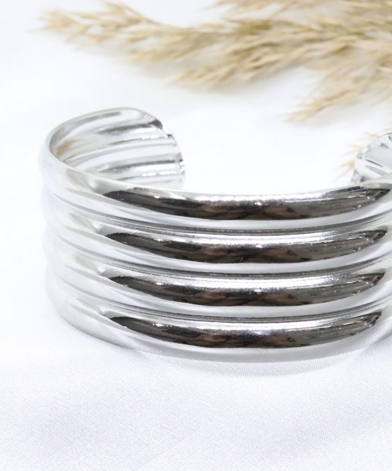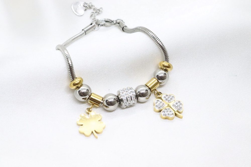 Ατσάλινο δίχρωμο βραχιόλι με στοιχεία τετράφυλλα τριφύλλια