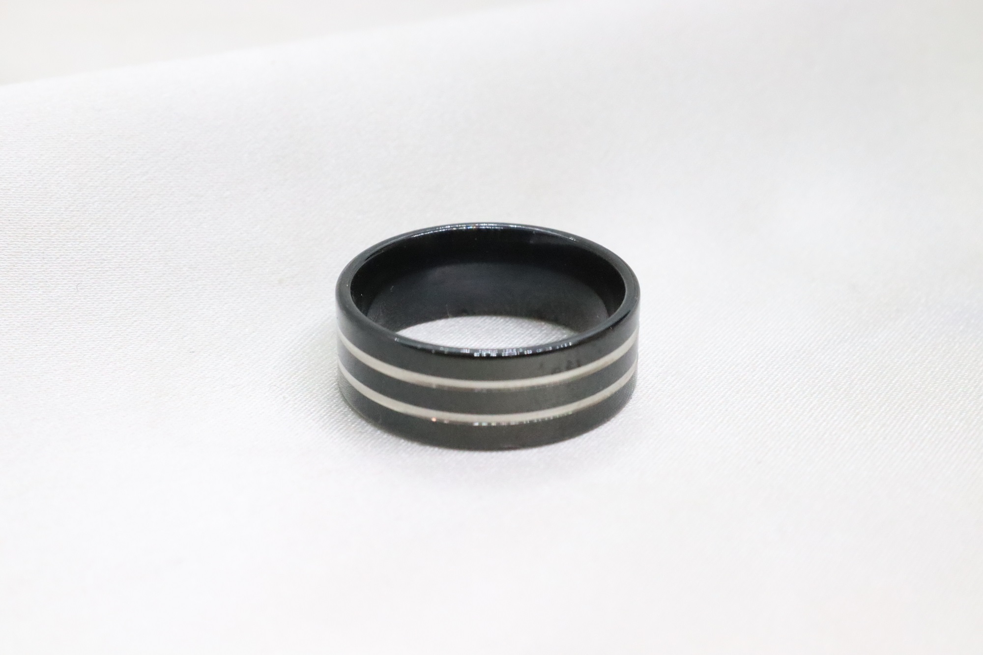 Ατσάλινο δαχτυλίδι μαύρο με ασημί λεπτομέρειες