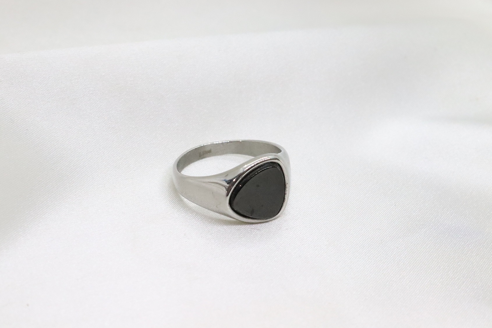 Ατσάλινο δαχτυλίδι με μαύρη πέτρα