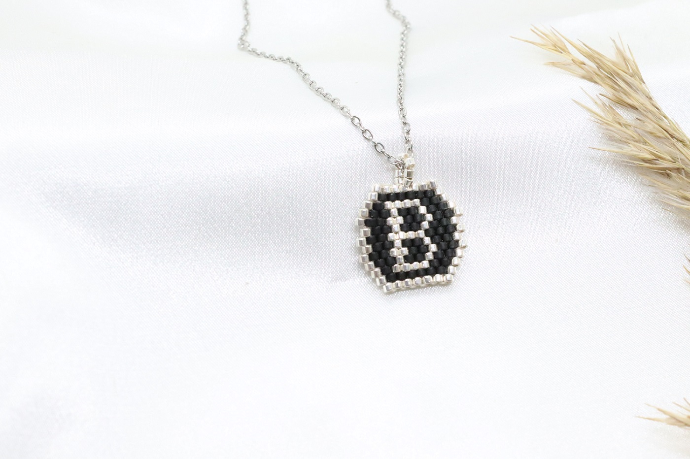 Ατσάλινο κολιέ μονόγραμμα με ασημί και μαύρες χάντρες