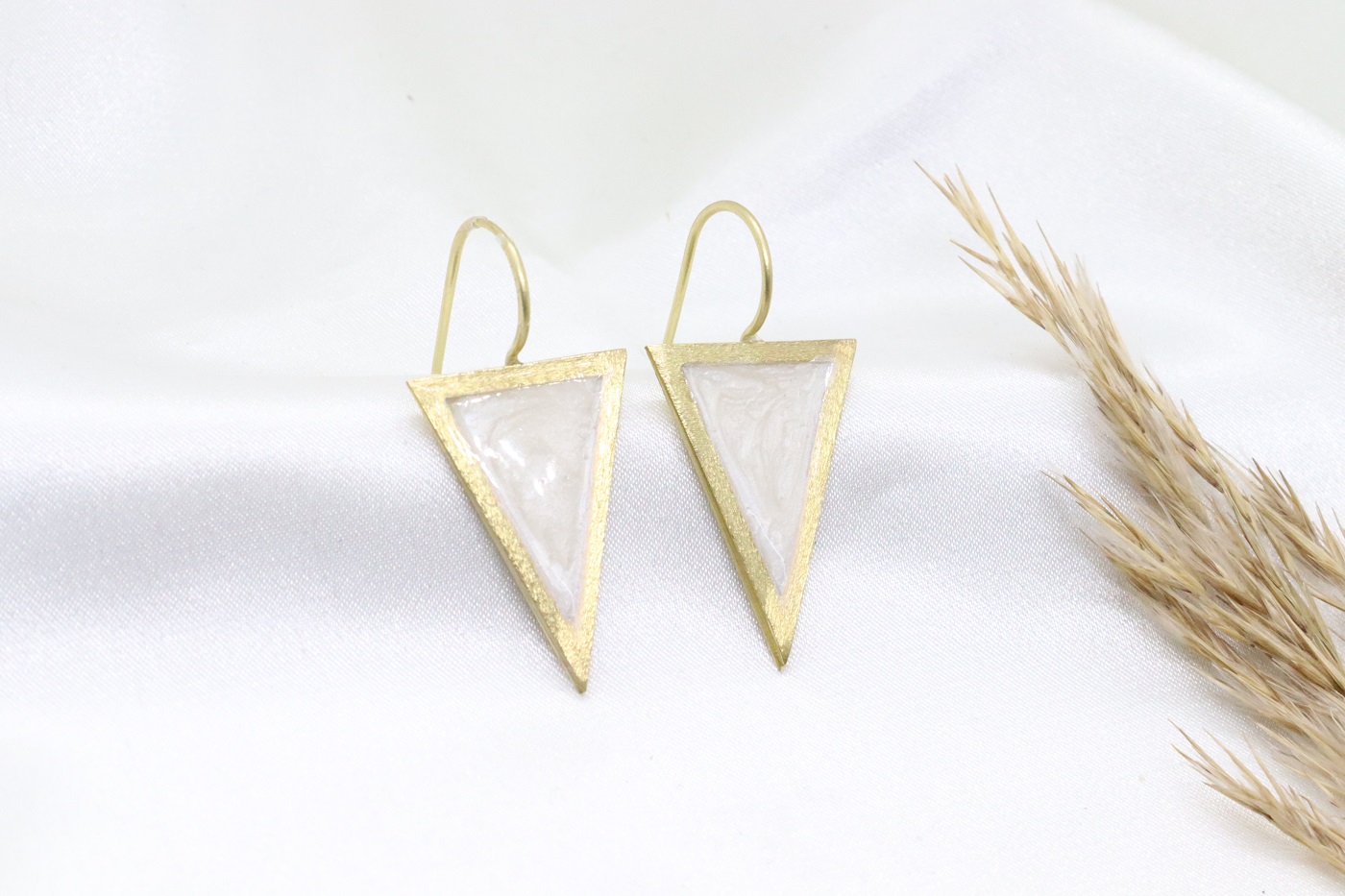 Ορειχάλκινα σκουλαρίκια με σμαλτό σε μπέζ χρώμα